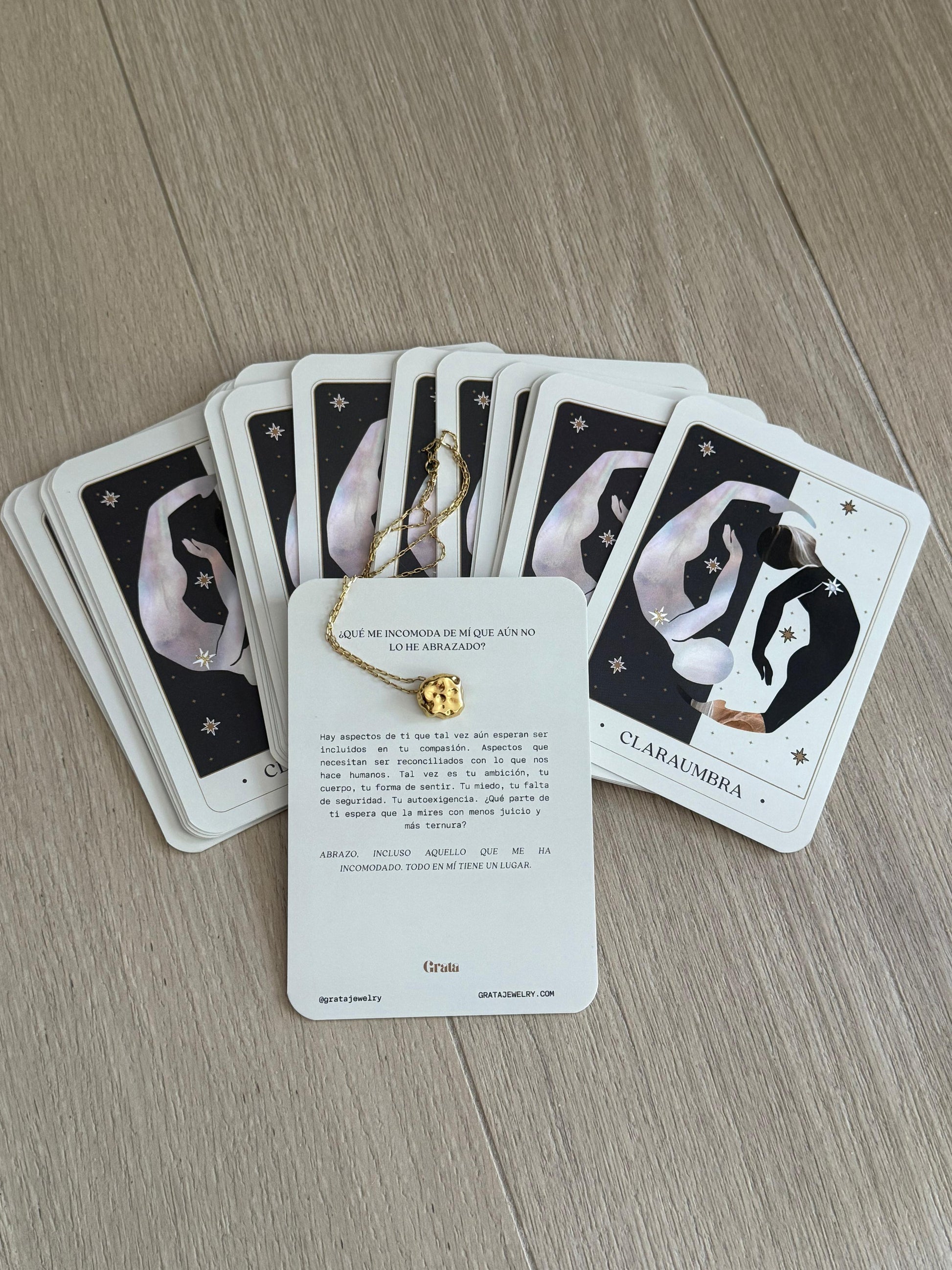 Usa el oráculo para intencionar tus piezas GRATA: elige una carta, respira y deja que su mensaje te guíe.